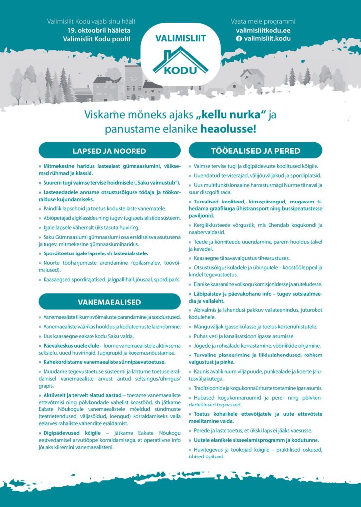 Lähipäevil jõuab kõikidesse Saku valla postkastidesse meie valimisprogrammi peamisi fookuspunkte tutvustav trükis: